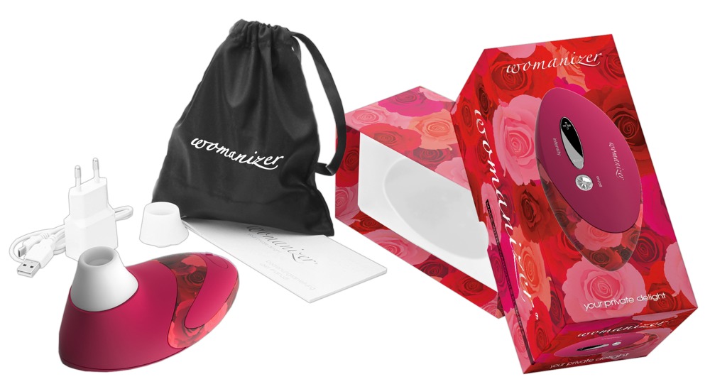 Бесконтактный клиторальный стимулятор Womanizer Pro малиновый с розами
